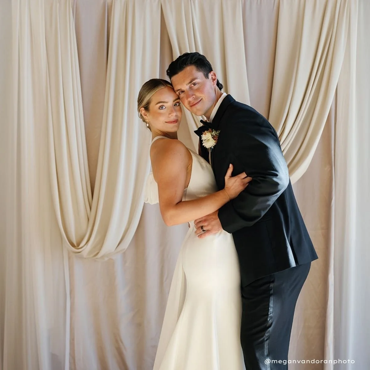 Our silk, ivory backdrop brings elegance into any space. Quality fabric, draped gracefully to frame your ideal moment.